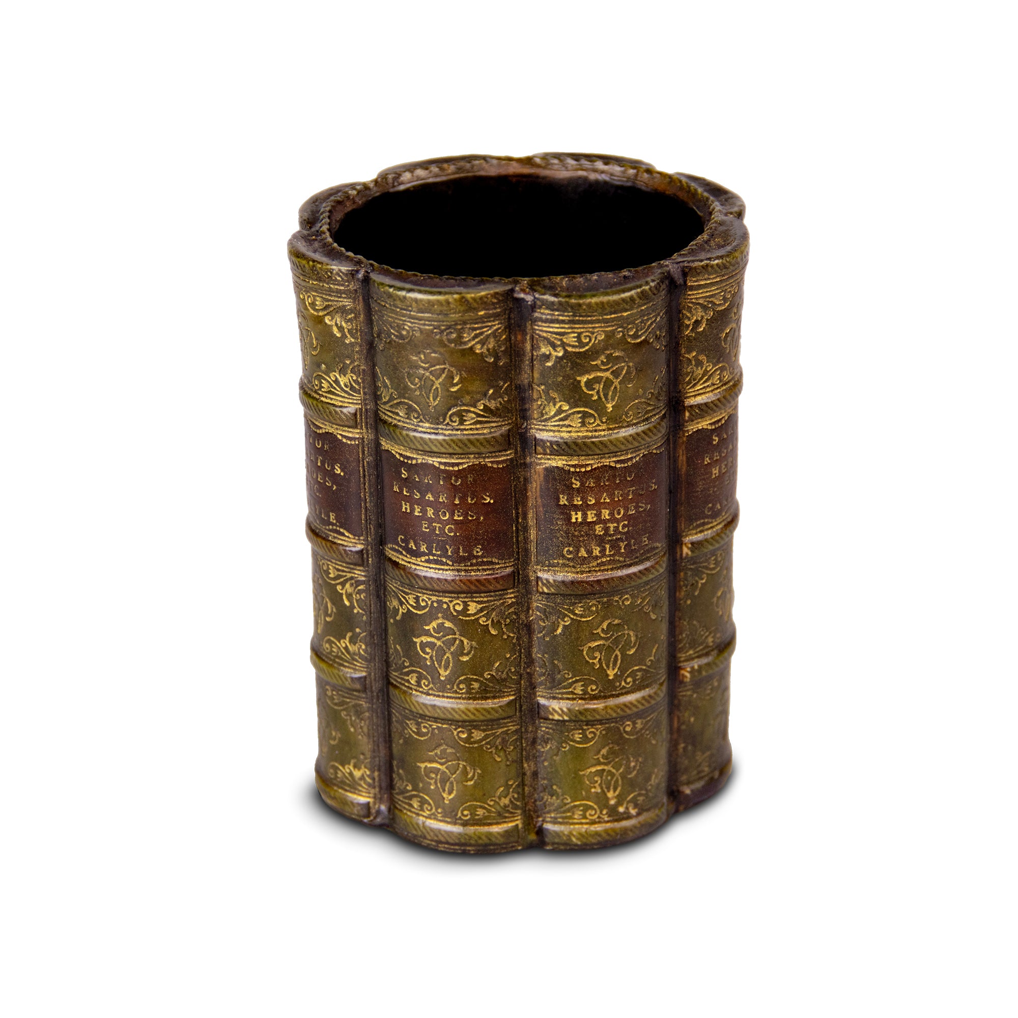 Featuring our signature antique book spine design, cast in resin from moulds of real highly detailed antique books, hand painted in your choice of colour. Keep your pens organised and add a touch of elegance to your office.