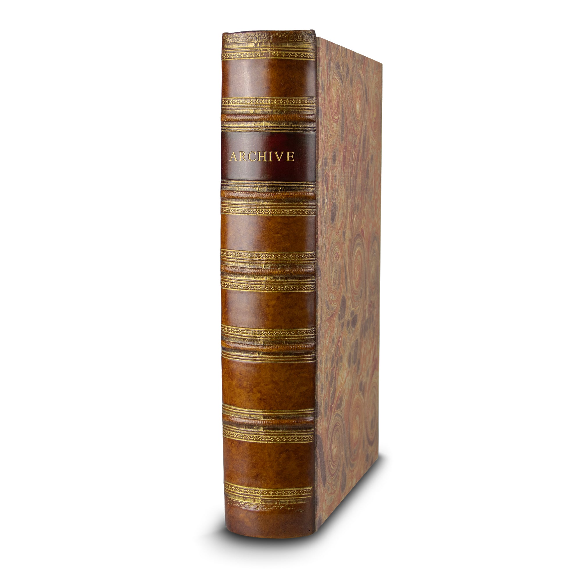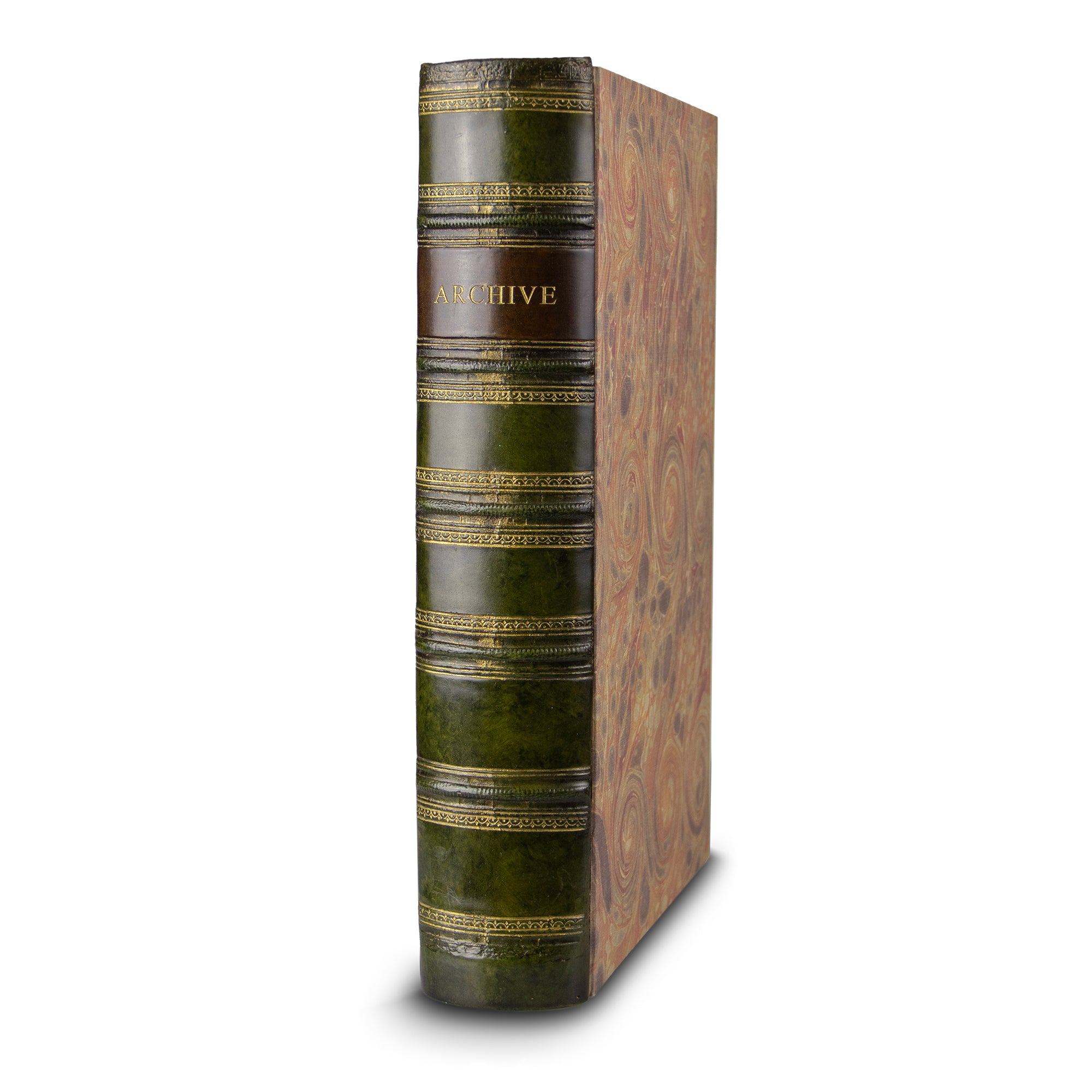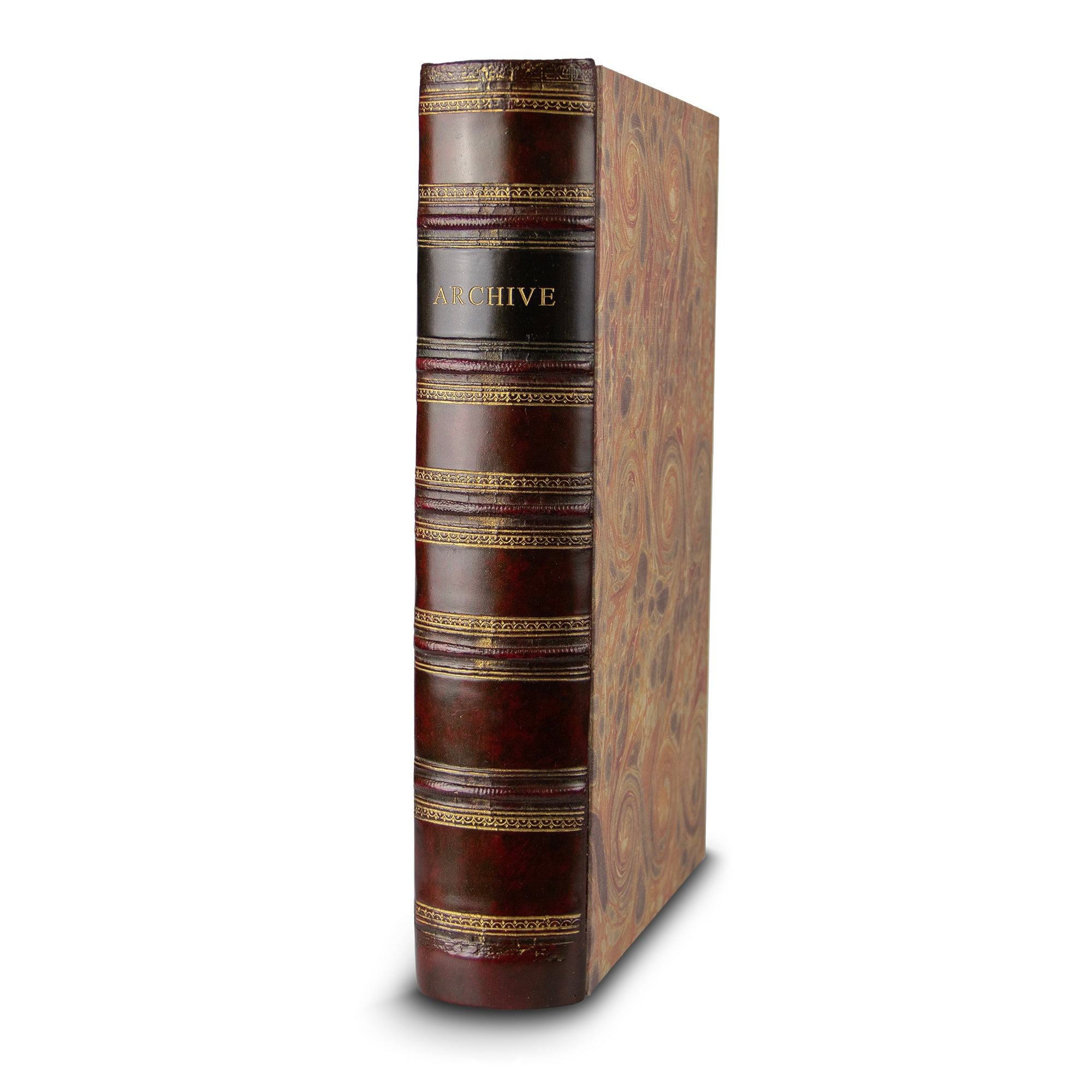 This brand new file design features our signature handmade antique book spine available blank or in three standard titles. To choose your own engraving with customised titles or logos, take a look at our Personalised Luxury Box File.