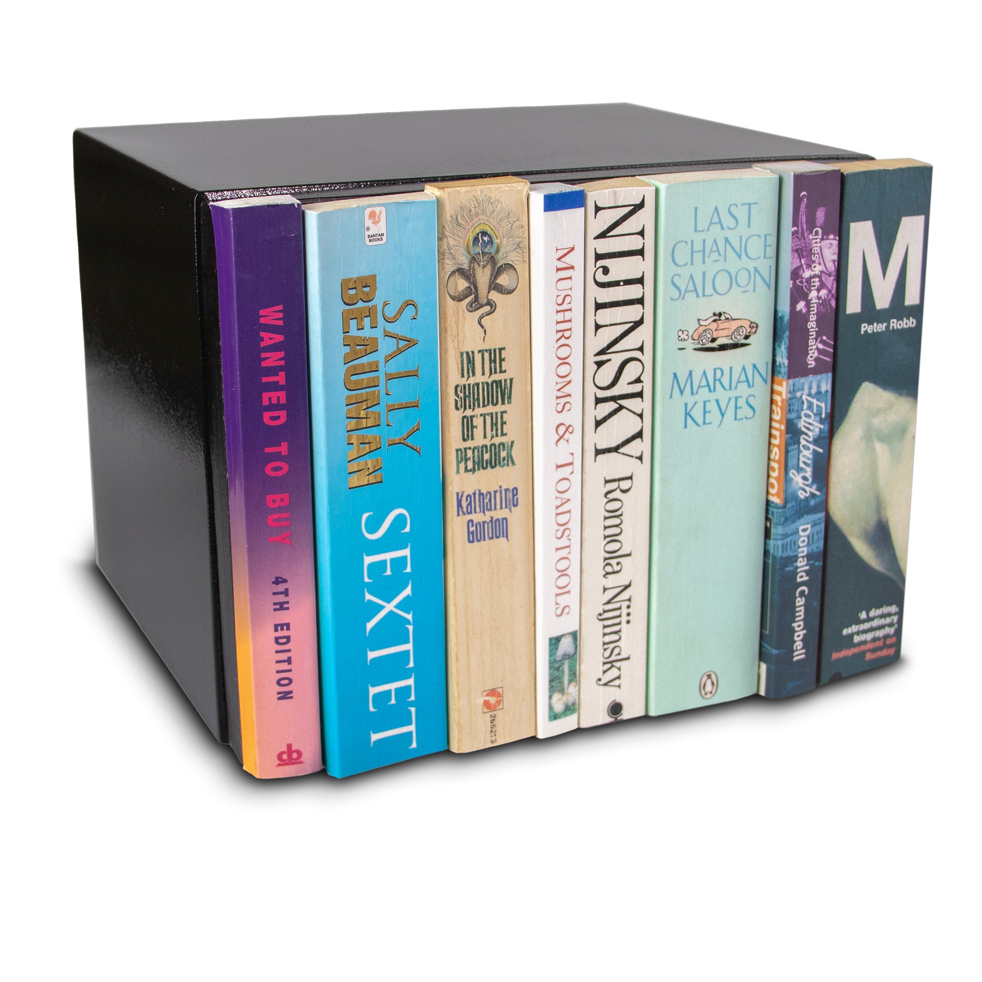We rescue real paperback book spines to make this safe, so the actual spines you receive will be selected for best look and fit and will not match the ones shown here.